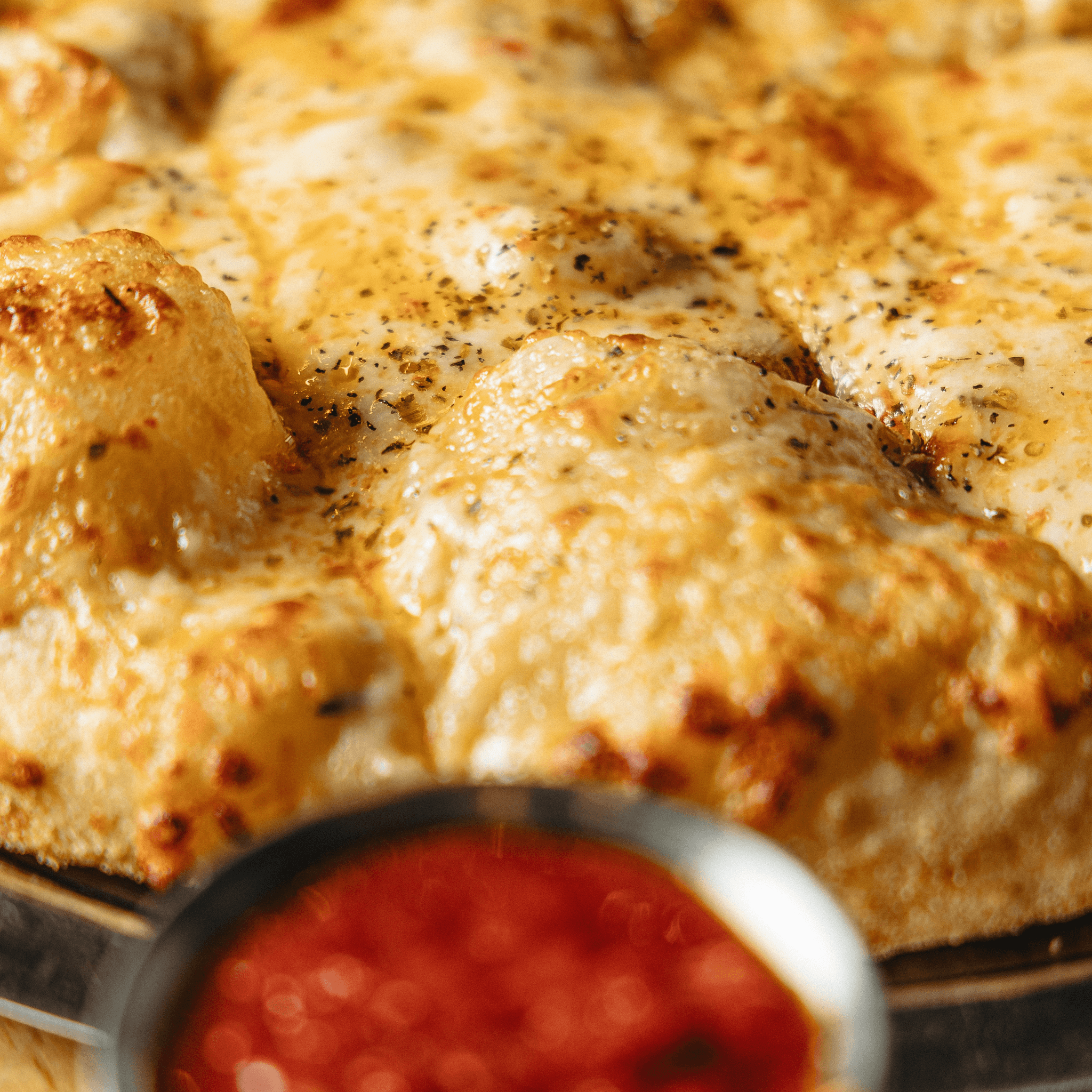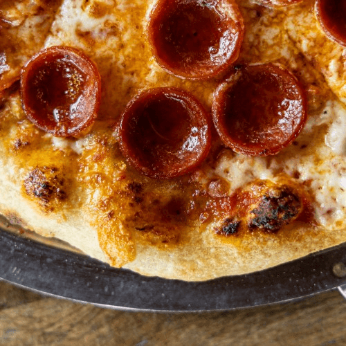mozzarella-provolone cheese blend, meatballs, salami, Italian sausage crumble, spicy cherry peppers