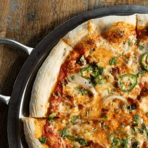 mozzarella, bacon, jalapeno, cilantro, sweet onion, pineapple puree, red sauce