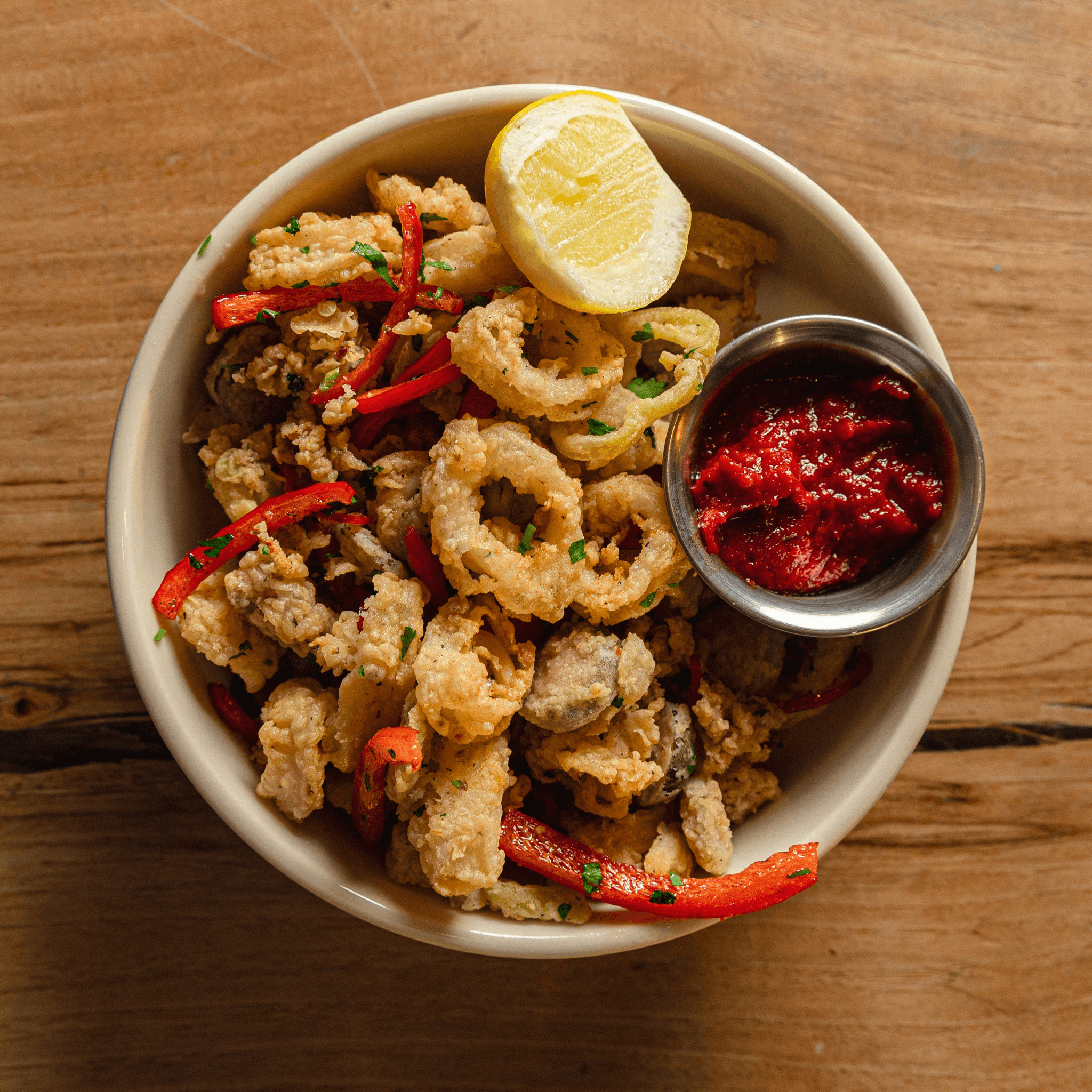 caperberries, pepperoncini, sweet peppers, calabrian tomato sauce